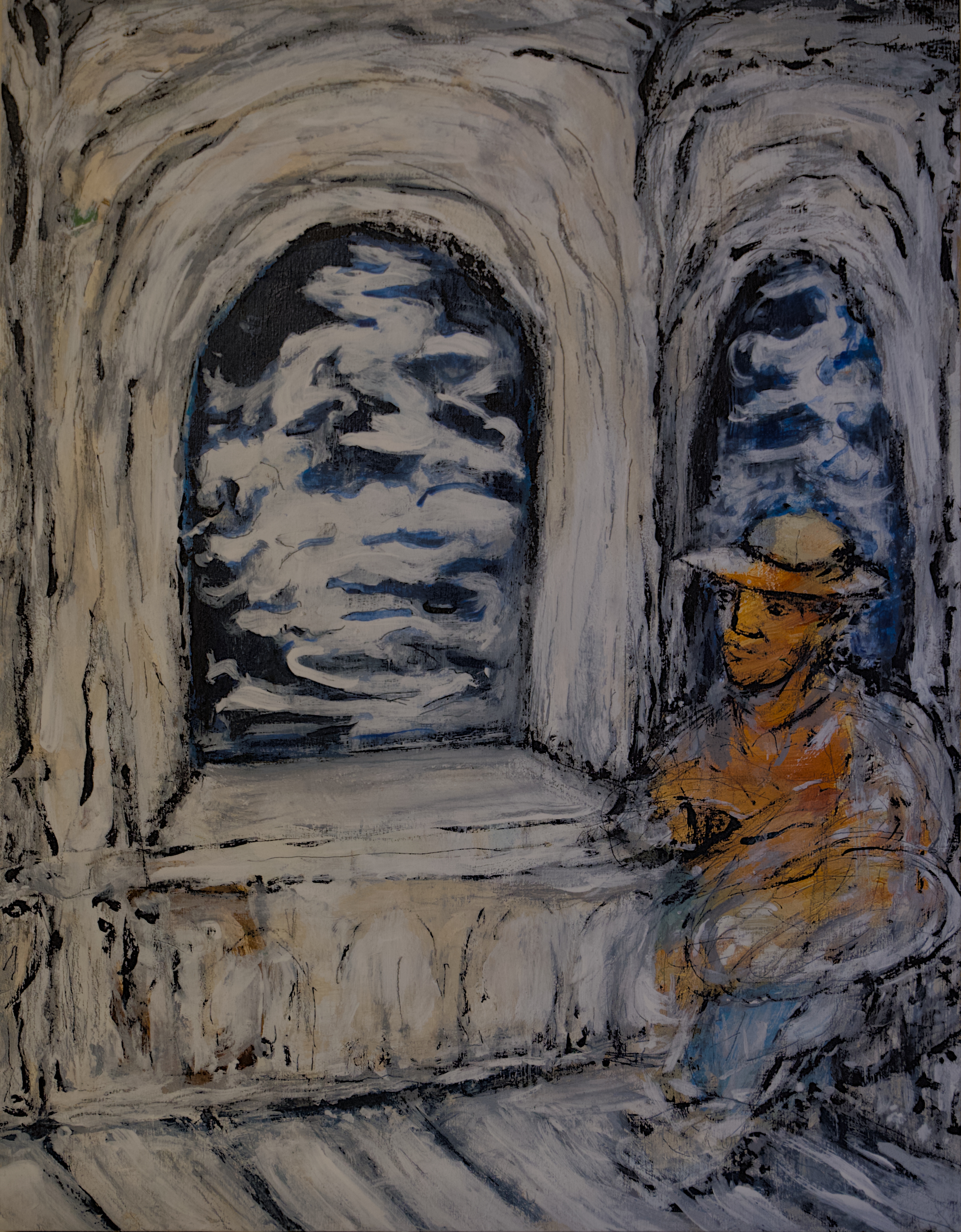 acrlyic on canvasHolding light into the forest, sitting on a rock doing nothing.